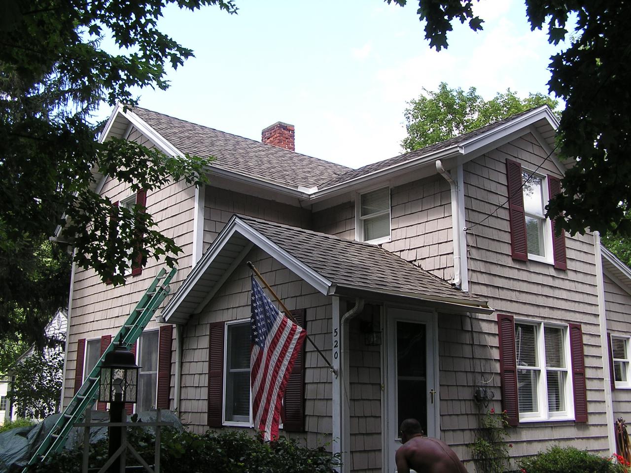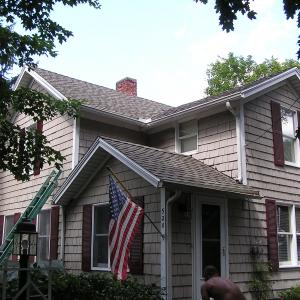 In the before picture the shingles were a worn out brown 3 tab shingle. In the after picture, the homeowners went with a dramatic change by going with the GAF Timberline shingle in the color of Hunter Green.