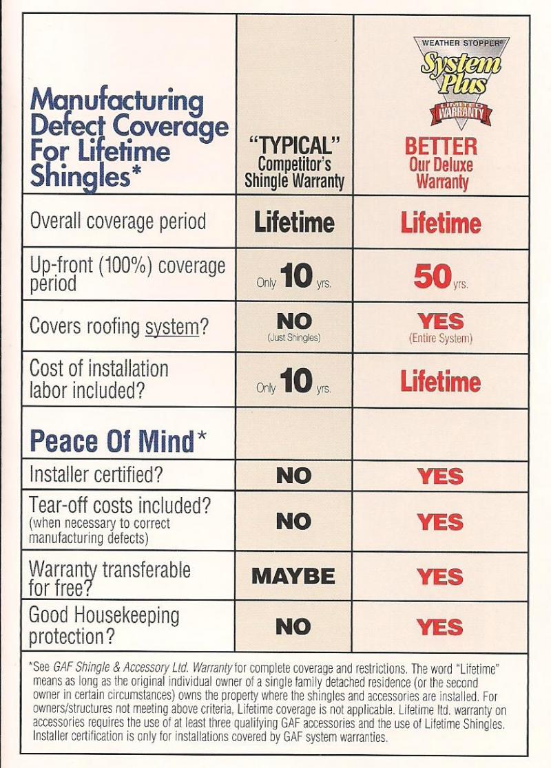 Most people think that a new roof is nothing more than just nailing shingles up. We know better, so we recommend GAF's Weather Stopper Roofing Protection System. It gives you the best protection against a variety of roofing problems. Plus, each component used in the system has earned the prestigious Good Housekeeping Seal.